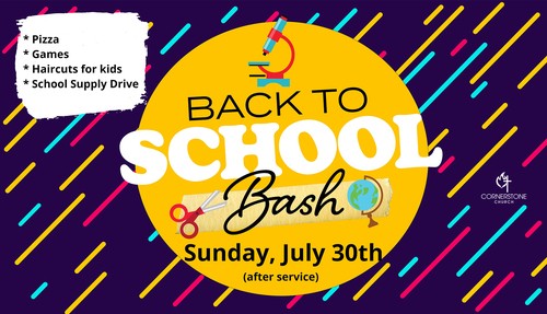 - Back to School Bash is July 30th. We will be having pizza, games, haircuts, also we will be collecting school supplies for foster kids.